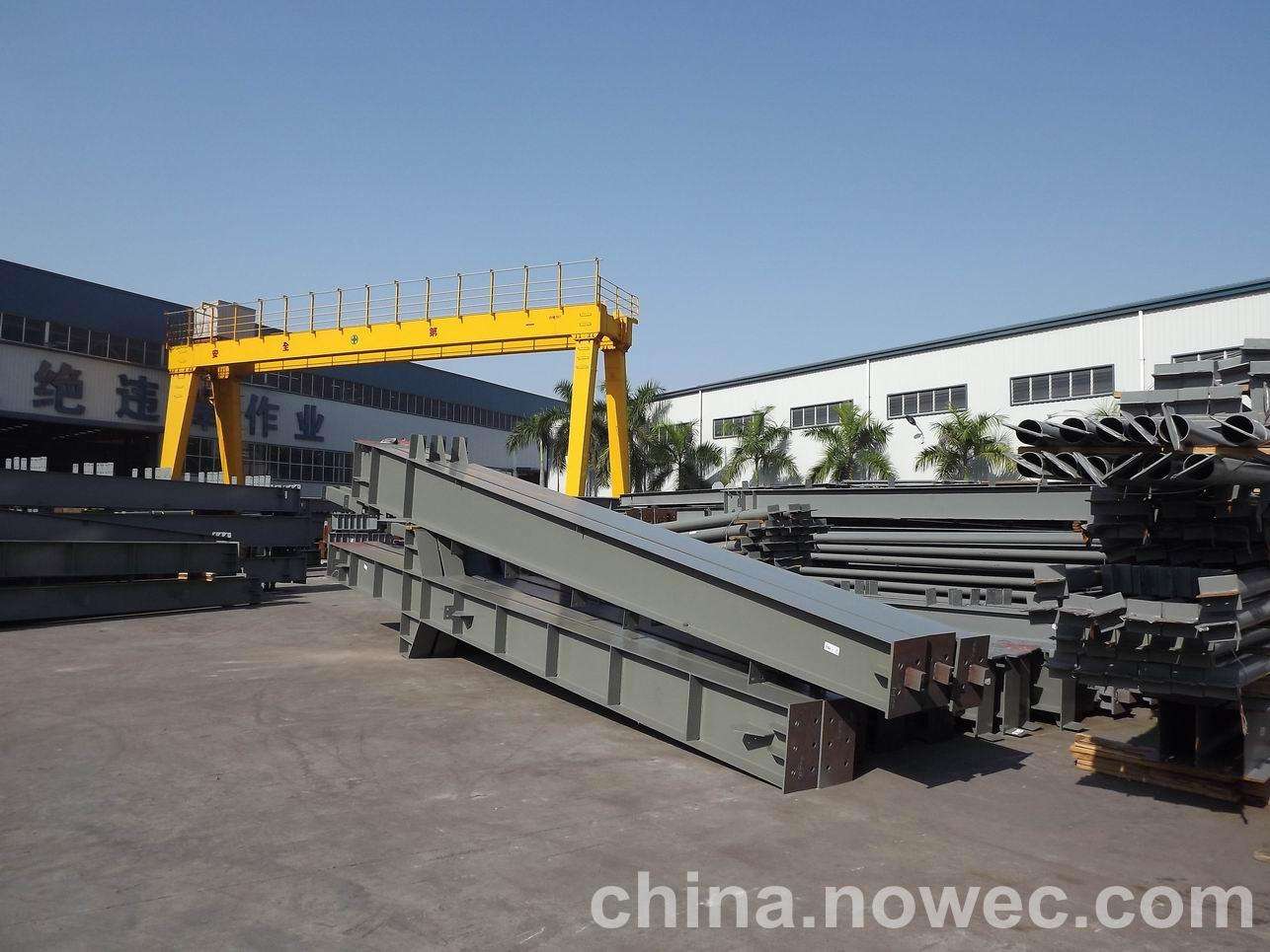 条状单元一般沿长跨方向分割,其宽度约为1~3个网格,其长度为l2或l2/2(l2为短跨跨距)。块状单元一般沿阜康网架平面纵横向分割成矩形或正方形单元。每个单元的重量以现有起重机能胜任为准。条(块)与条(块)之间可以直接拼装,也可空一网格在高空拼装。由于条(块)状单元是在地面拼装,因而高空作业量较高空散装法大为减少,拼装支架也减少很多,又能充分利用现有起重设备,故较经济。这种安装方法适用于分割后网架的钢度和受力状况改变较小的各类中小型网架,如两向正交正放四角锥、正放抽空四角锥等网架。